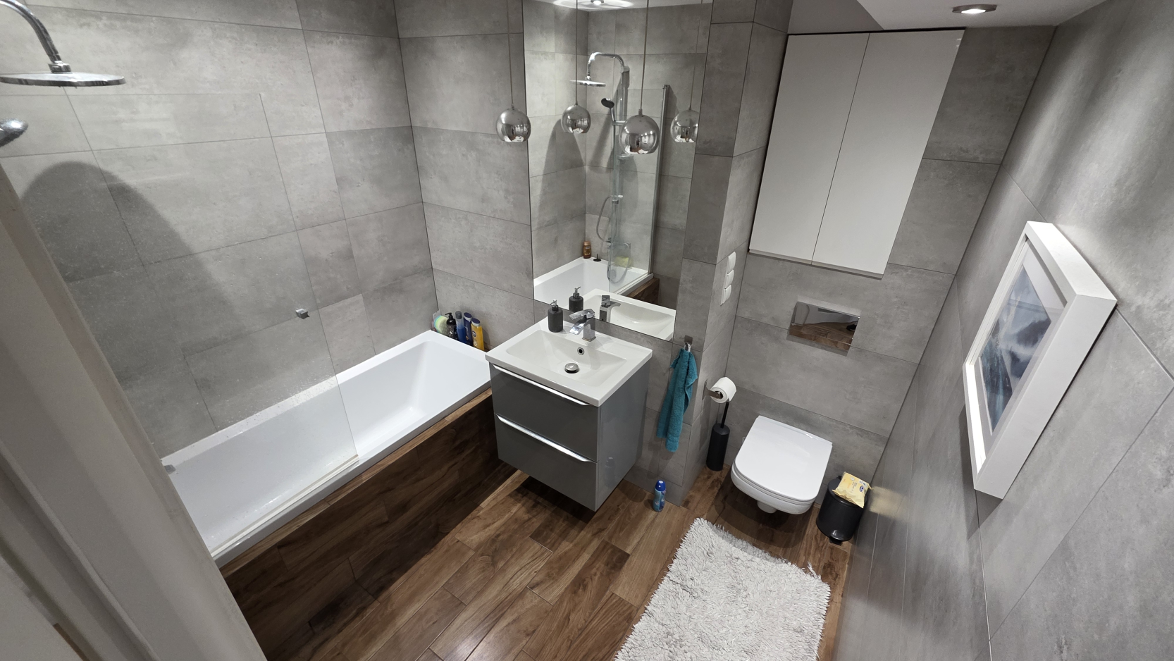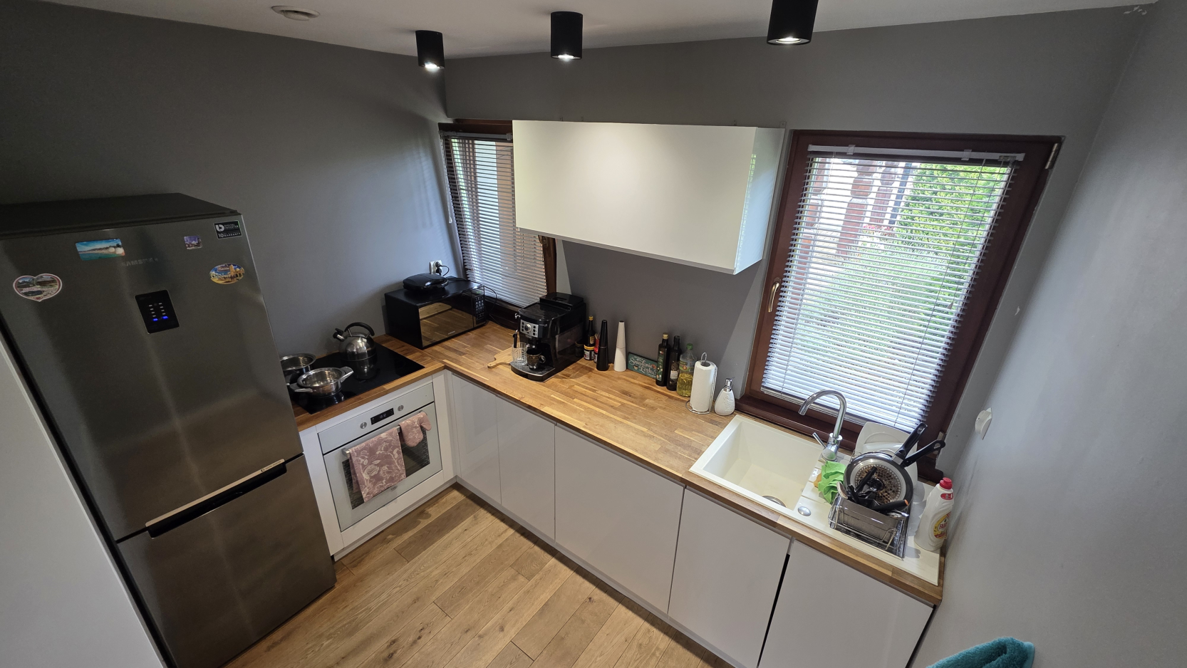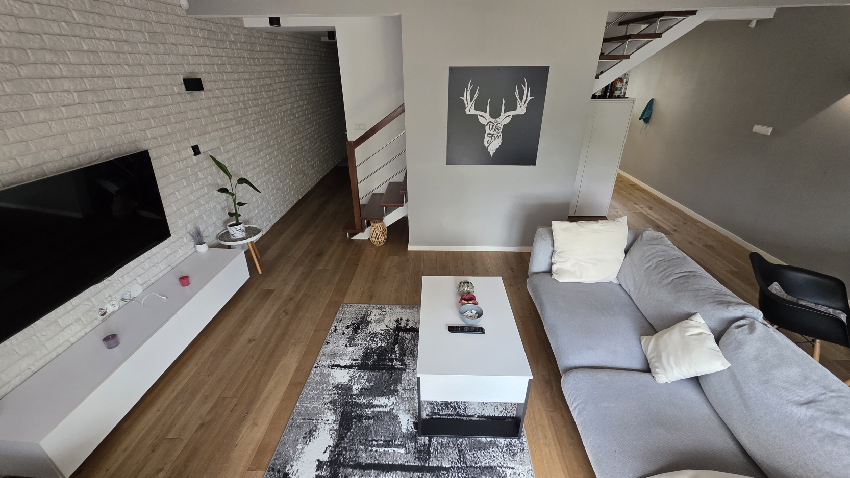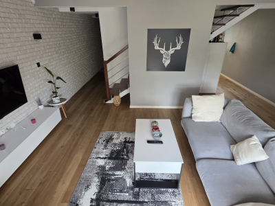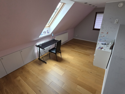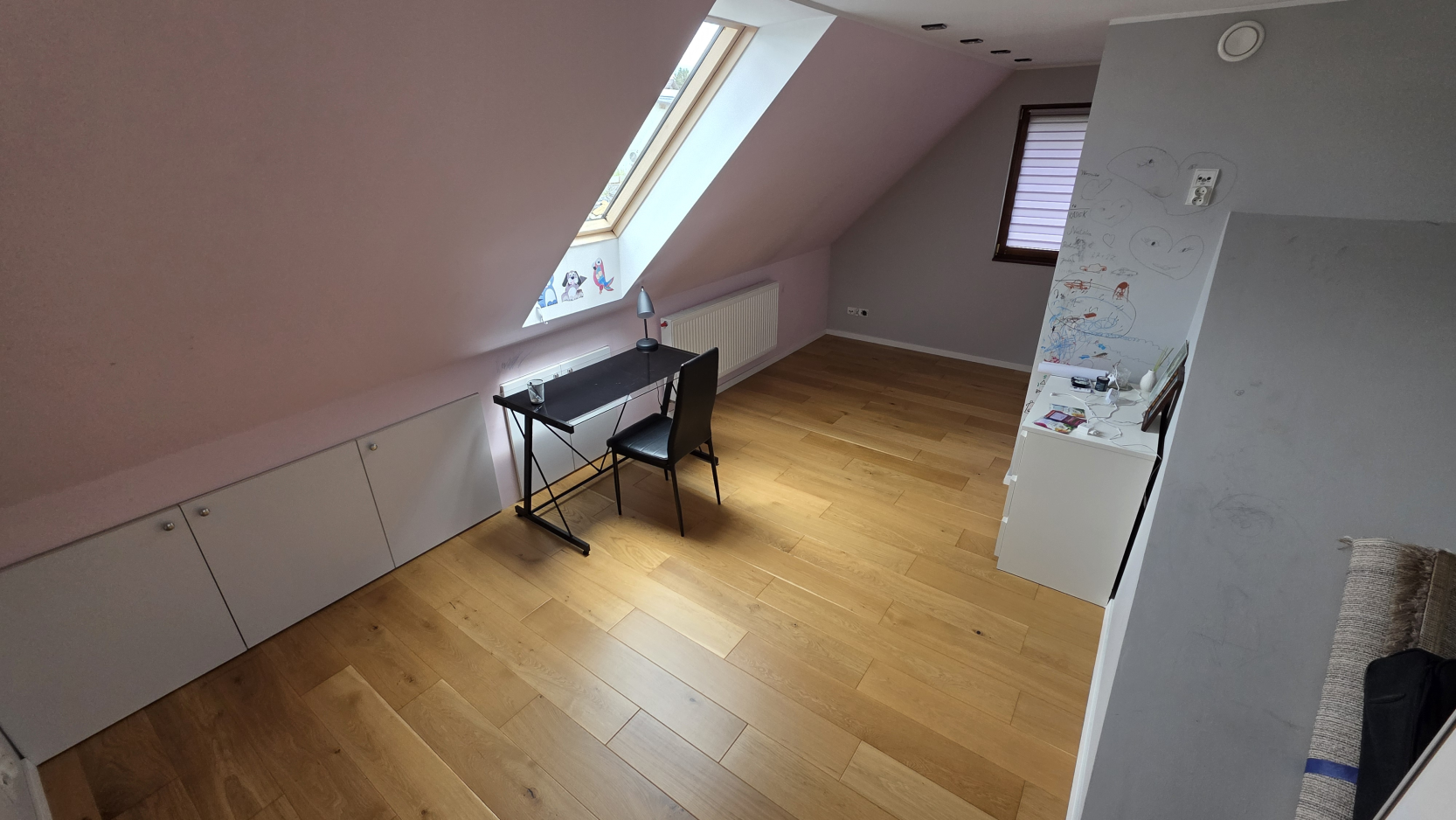 Po wejściu do środka i przejściu przez wiatrołap znajdujemy się w strefie dziennej. Podzielona została na przestronny salon z jadalnią oraz kuchnię. Z salonu prowadzi wyjście na ogród. Na parterze znajduje się również nowoczesna łazienka. Na piętrze znajduje się strefa prywatna zagospodarowana dwoma sypialniami. Jeden pokój posiada balkon ze spektakularnym widokiem na Tatry. Na poddaszu znajduje się też dodatkowe wykończone pomieszczenie z możliwością zagospodarowania wedle własnego uznania.
