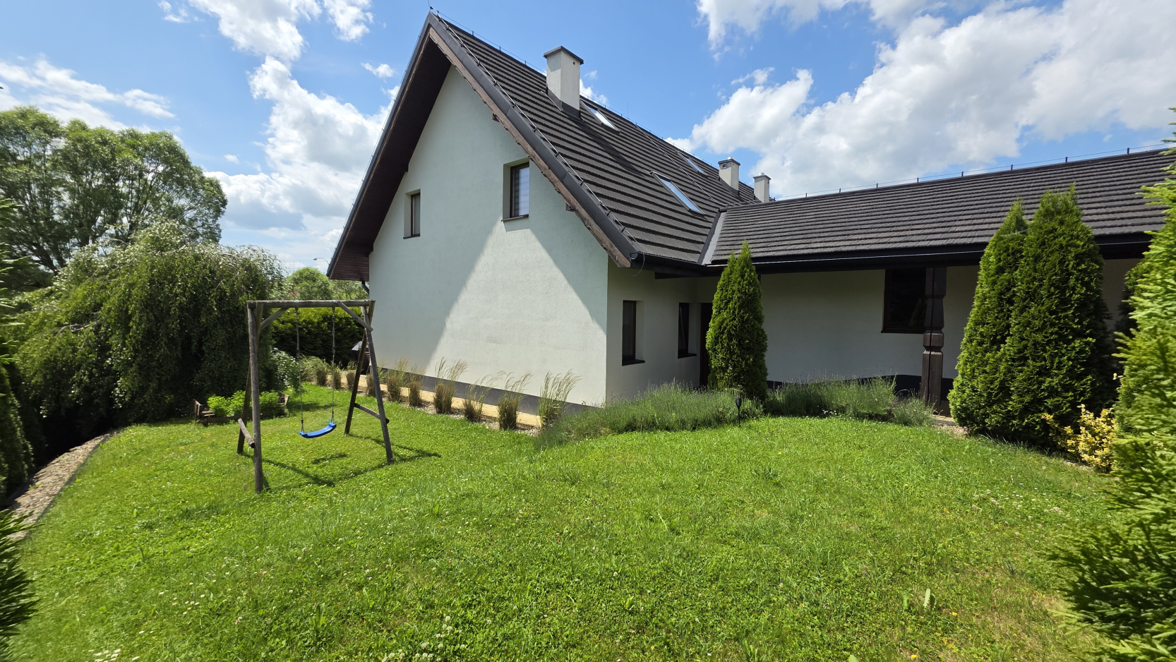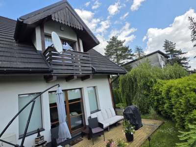 Działka jest ogrodzona i w pełni urządzona. Zielona strefa dookoła obsadzona jest krzewami. Dzięki czemu przebywając w ogrodzie, cieszymy się prywatnością. Z tyłu domu znajduje się urządzona przestrzeń do odpoczynku. Strefa relaksu wyposażona jest w meble ogrodowe.