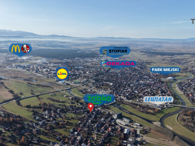 Dom położony jest w jednej z najbardziej pożądanych części Nowego Targu, co zapewnia szybki dostęp do pełnej infrastruktury miejskiej, a jednocześnie oferuje spokój i widok na Tatry.