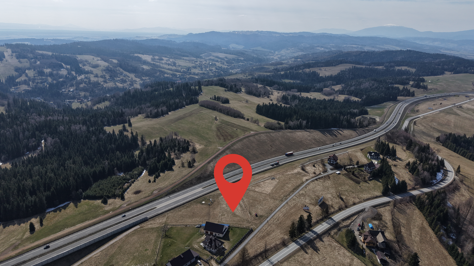 Nieruchomość posiada bardzo dogodną lokalizację komunikacyjną. Położenie przy ważnym węźle drogowym umożliwia szybki i komfortowy dojazd do Nowego Targu, a dalej do wszystkich atrakcji Podhala – w tym Zakopanego. W przeciwnym kierunku z łatwością wjedziemy na nową Zakopiankę, zapewniającą sprawne połączenie z Krakowem.