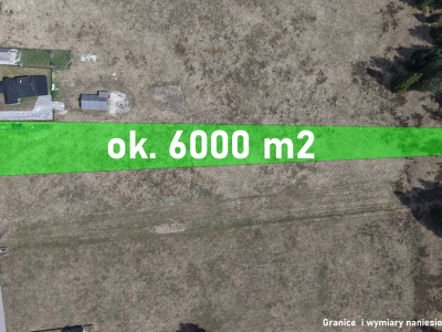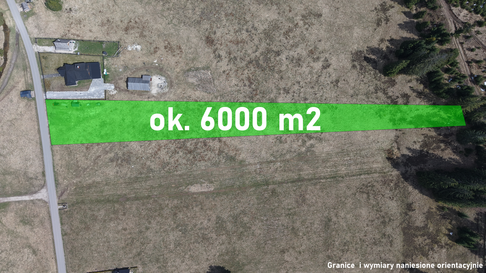 Parcela ma powierzchnię około 6000 metrów kwadratowych. Jej szerokość od frontu, przy asfaltowej drodze, wynosi około 30 metrów, natomiast długość sięga około 260 metrów, co daje dużą przestrzeń.
