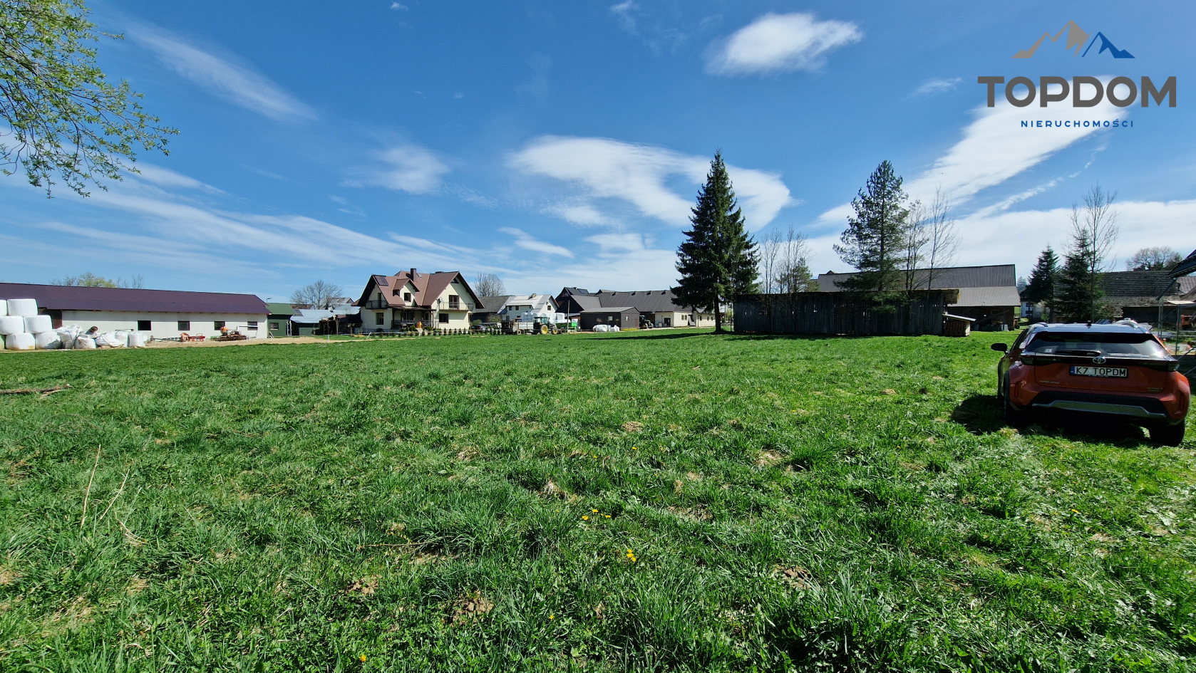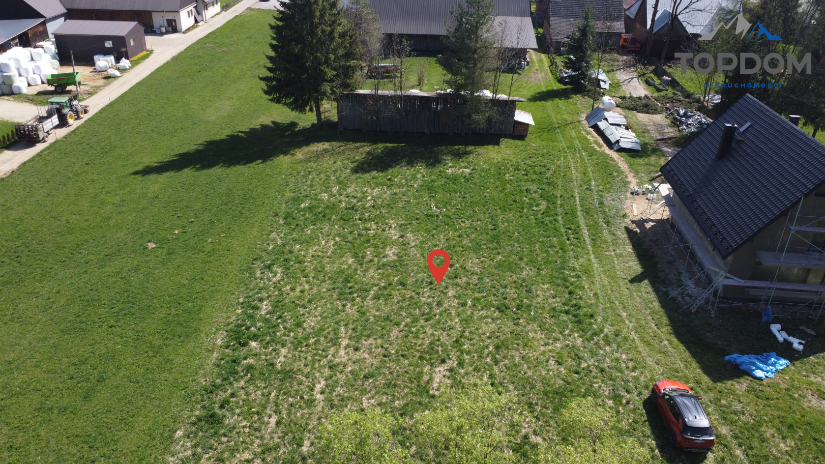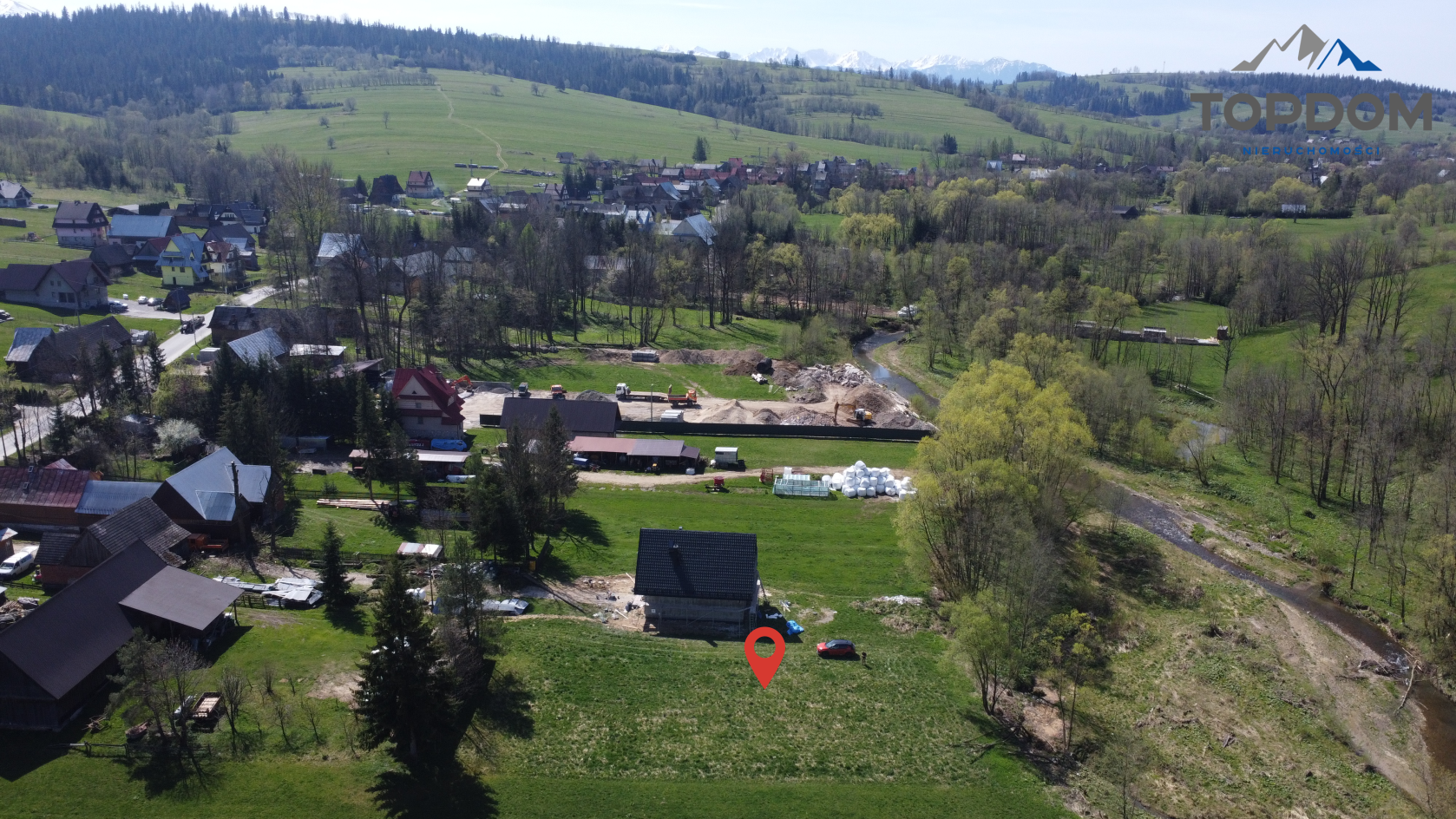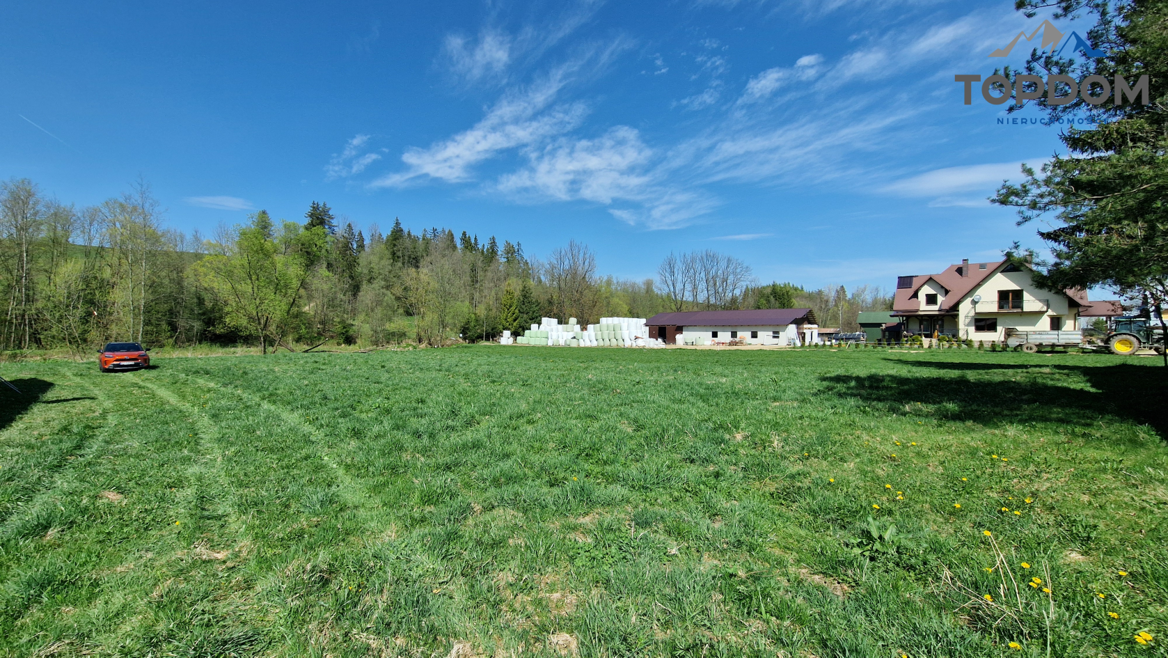 Działka ma powierzchnię około 2304 metrów kwadratowych, w tym 1257 metrów kwadratowych to teren budowlany. To znakomite proporcje, aby z przodu wybudować dom, a tył aż do potoku przeznaczyć na ogród i strefę zieloną.