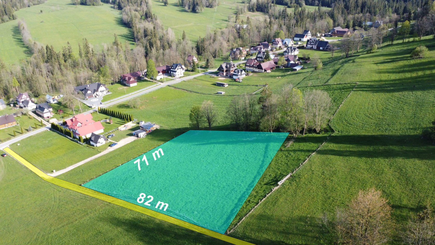 Obiektem sprzedaży jest działka budowlana we wsi Skrzypne niedaleko Zakopanego. Teren cichy i spokojny. Dookoła jedynie kilka domów jednorodzinnych, reszta terenu to pola i lasy. Teren stworzony dla osób poszukujących spokojnego miejsca do zamieszkania bądź pod inwestycję. Ponad pół hektara powierzchni w foremnym kształcie pozwala zagospodarować parcelę według własnego pomysłu.