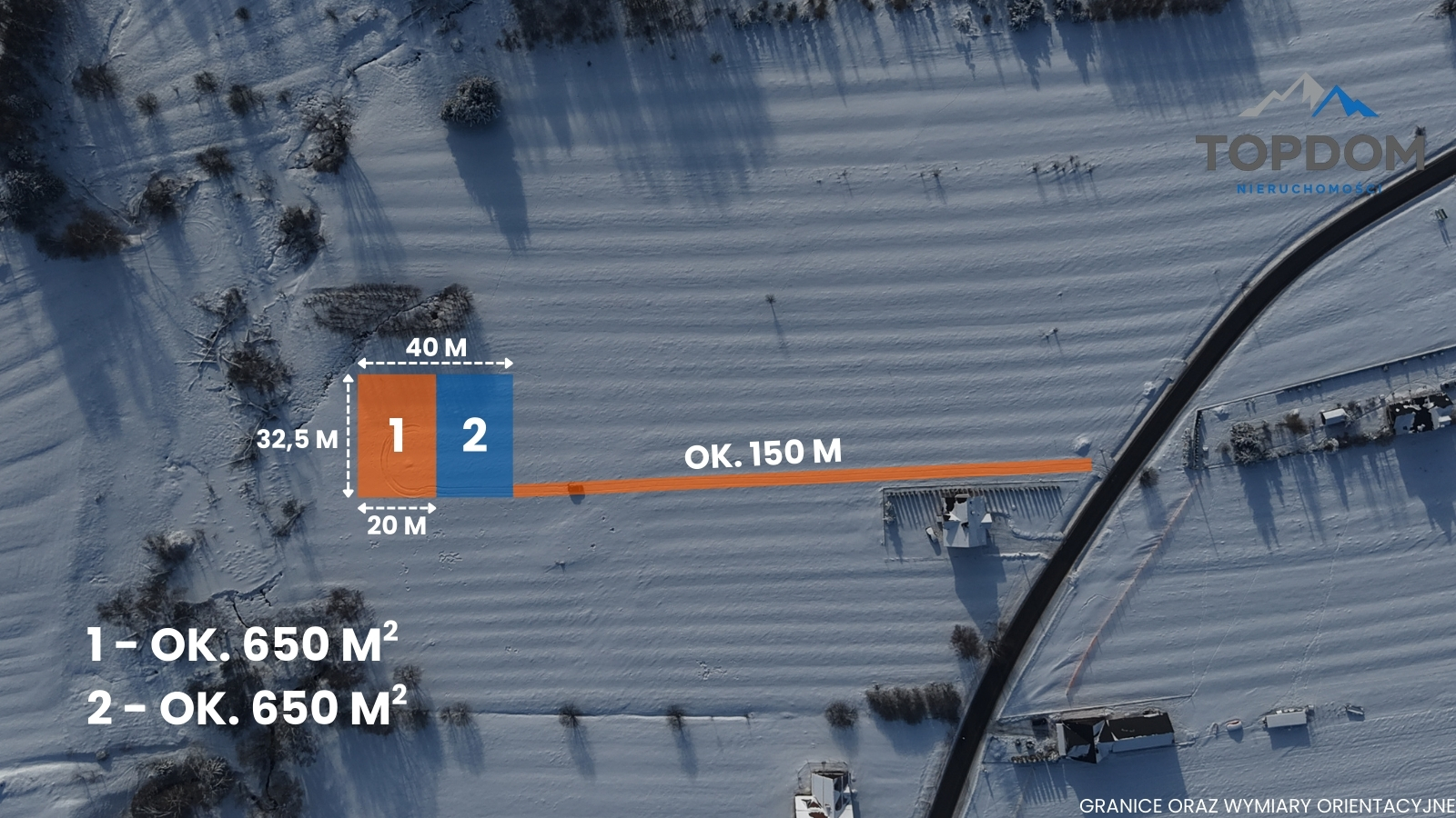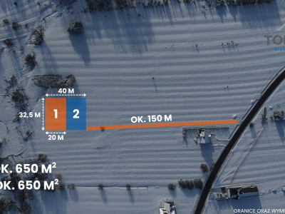 Każda z działek ma powierzchnię około 650 m², co łącznie daje około 1300 m² terenu. Działki mogą zostać nabyte łącznie lub osobno.