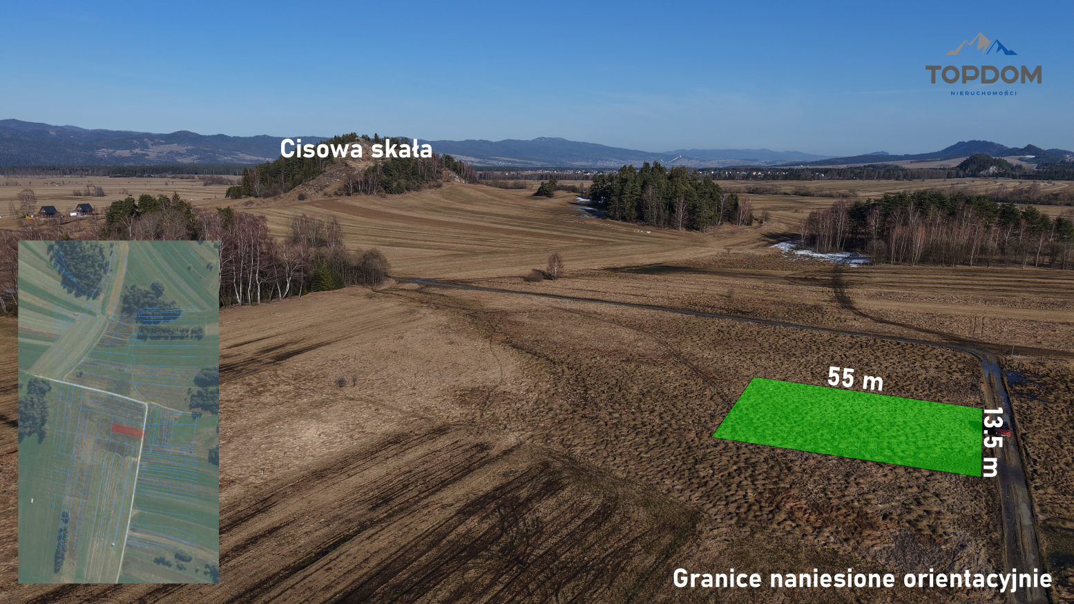 Okolica cechuje się szerokimi widokami na pasma górskie. Z najbliższego otoczenia widoczne są Tatry, Babia Góra oraz Gorce. Otwartość krajobrazu sprawia, że miejsce jest atrakcyjne dla osób ceniących przestrzeń, ciszę oraz kontakt z naturą.