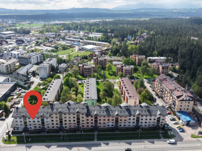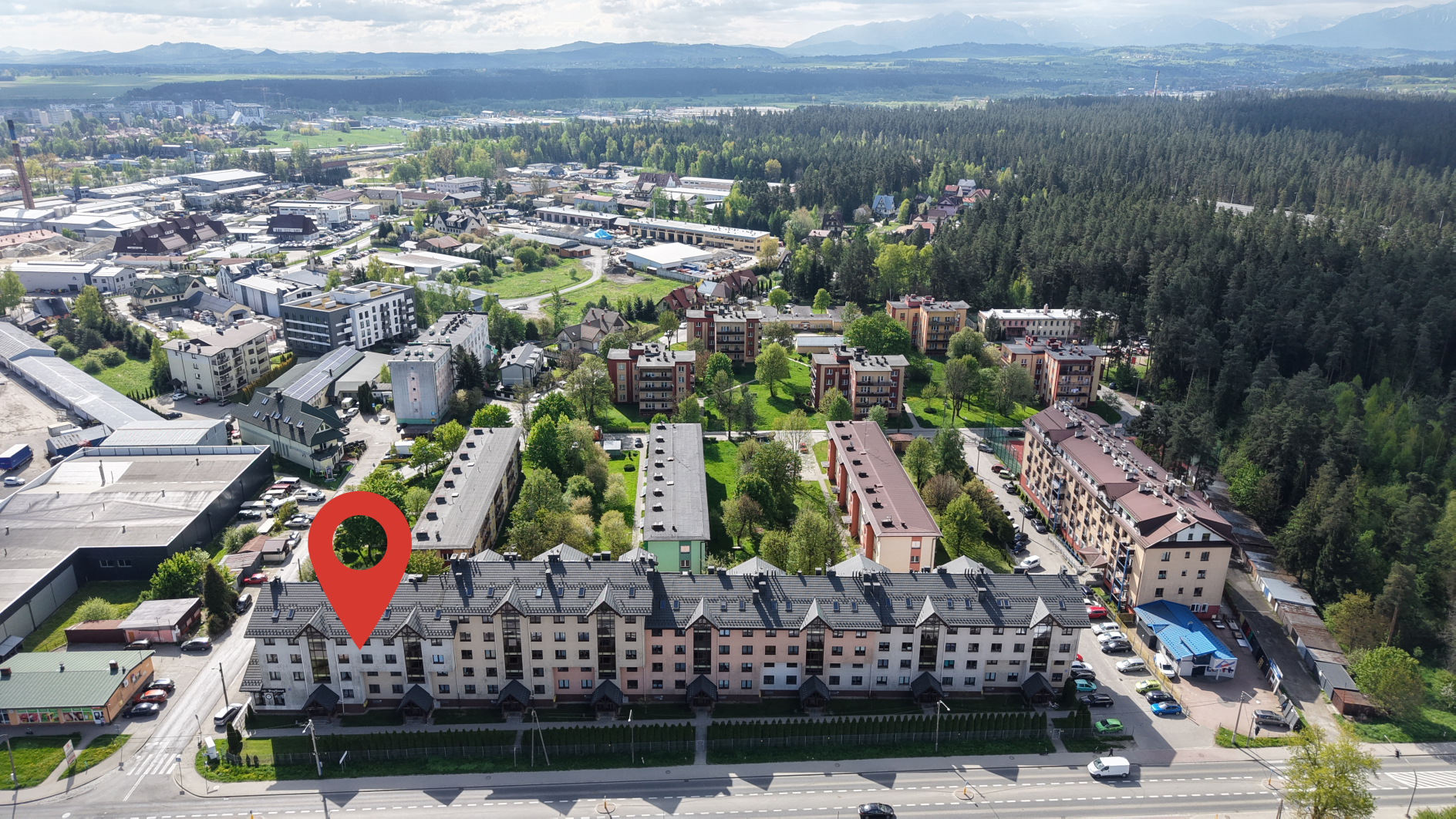 Obiektem sprzedaży jest mieszkanie położone na osiedlu Bór w Nowym Targu. Apartamentowiec zlokalizowany jest bezpośrednio przy ul. Ludźmierskiej w sąsiedztwie Parku Handlowego Stopiak. Dzięki lokalizacji dojazd do centrum miasta jest szybki i wygodny. W sąsiedztwie znajdują się sklepy wielkopowierzchniowe, kościół, rzeka oraz ścieżka rowerowa. Nieopodal znajduje się przystanek autobusowy, który umożliwia przemieszczanie po mieście bez potrzeby korzystania z samochodu.