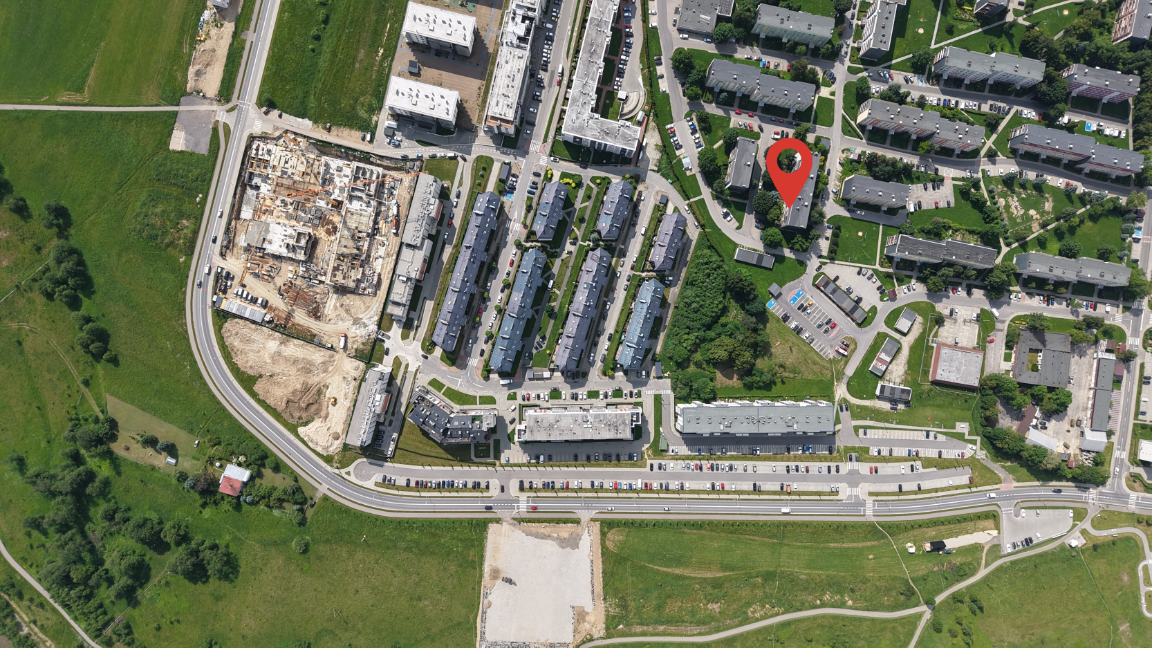 Dużo miejsca parkingowego przed blokiem
