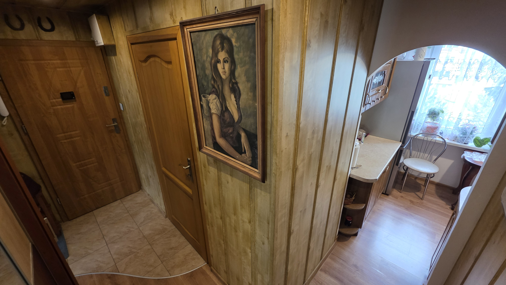 Po wejściu do mieszkania znajdujemy się w przestronnym przedpokoju wykończonym w drewnie. Po prawej stronie znajduje się duży salon, z którego wychodzimy na przestronny balkon.